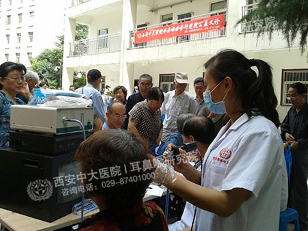 活动邀请到西安新城中大耳鼻喉医院部分名医进社区进行义诊便民服务活动,并为居民进行免费的耳鼻喉内窥镜检查。居民们可从内窥镜的显示器上,清楚的看到自己鼻腔内、耳朵内或者咽喉部疾病病症所在。随后,中大医务人员还为居民们建立健康档案。
