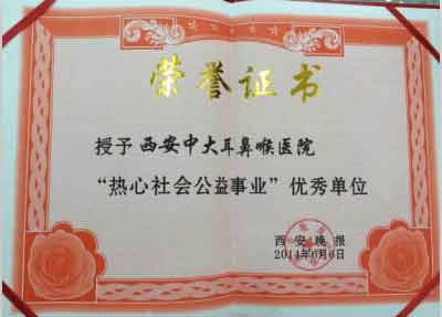 在接受记者采访时,西安新城中大耳鼻喉医院院长表示:荣获【热心社会公益事业】优秀单位称号不仅是政府层面的一种认可,更是一种鞭策、一份责任。救死扶伤、帮助弱者、热心社会公益事业是我们作为一名医者必须要坚守的使命。